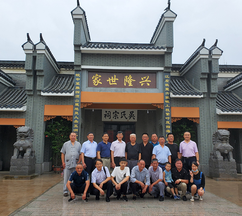 2020年7月11日,六家畈的早晨天空下着大雨,上午九点半,在吴氏宗祠门口,迎来一群客人,他们是安徽各地吴氏宗亲们。在安徽至德文化研究会秘书长吴瑞贤带领下,有来自桐城汪河吴家嘴、肥东八斗吴福村吴复后人、肥东黄疃大吴村后人,大家在宗祠参观考察并召开交流会。会议的主题有三项,一是吴氏各家族的迁徙起源和发展、文化建设和感想体会;二是向汪河吴家嘴吴氏宗祠捐赠各吴氏家族族谱仪式;三是吴瑞贤向宗亲们传达安徽至德研究会的有关安徽统谱推进工作的告知书。